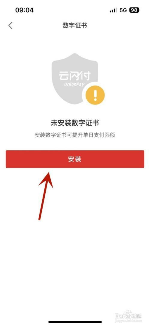 3、点击安装在界面点击安装即可实现在云闪付中安装数字证书了。