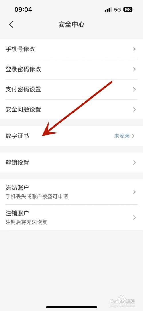 2、点击数字证书进入后选择一下界面的数字证书选项。
